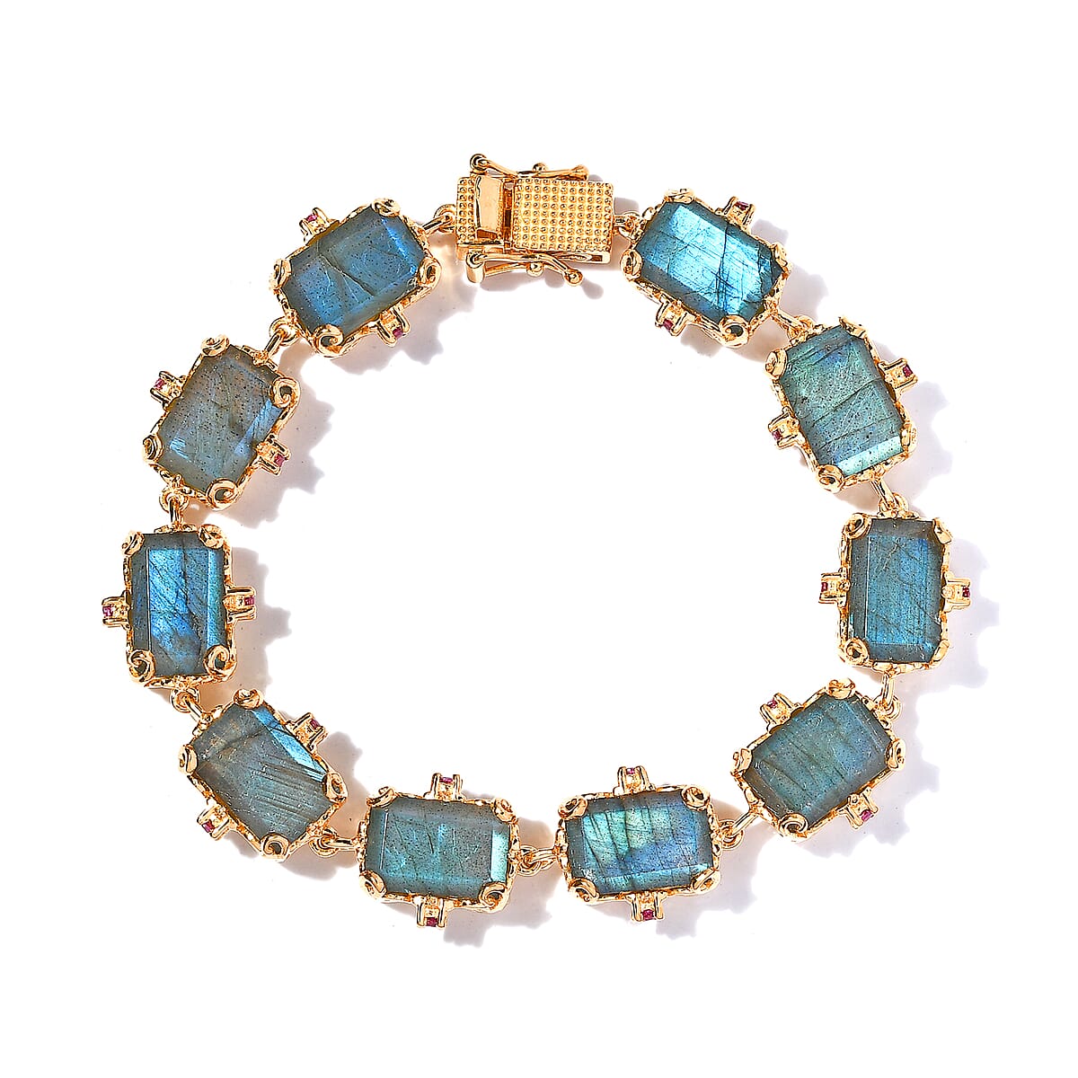 AAA Malagasy Labradorite and Orissa Rhodolite Garnet Bracelet in Vermeil Yellow Gold Over Sterling Silver (7.25 In) 42.00 ctw