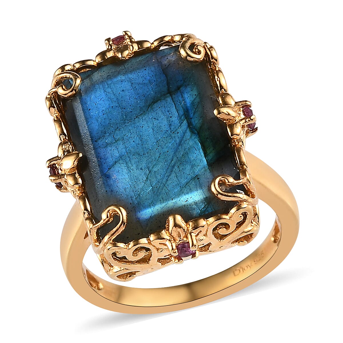 AAA Malagasy Labradorite and Orissa Rhodolite Garnet Ring in Vermeil YG Over Sterling Silver (Size 10.0) 14.25 ctw