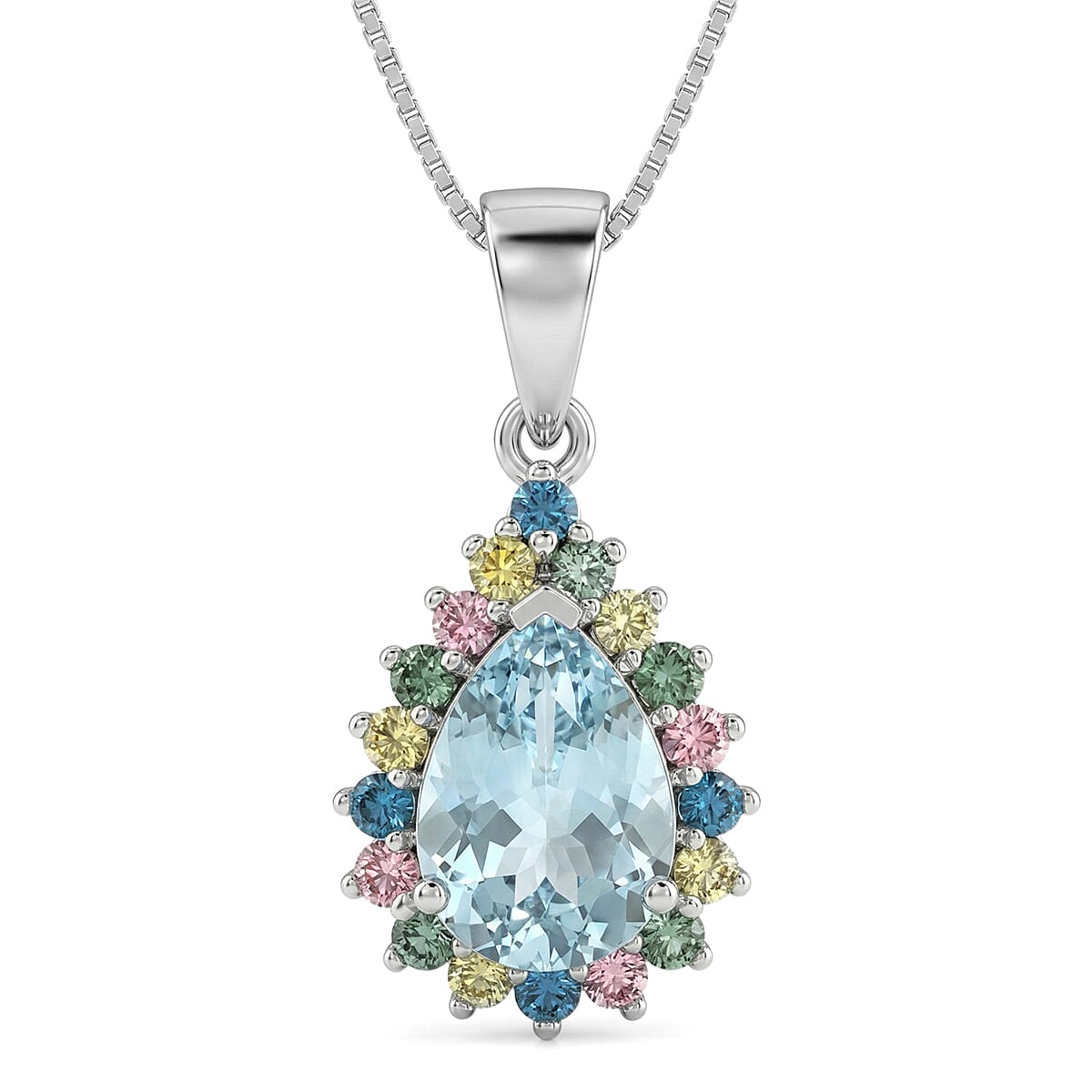 AAA Mangoro Aquamarine and Luxuriant Lab Grown Multi Diamond IR SI 2.85 ctw Pendant Necklace in Rhodium Over Sterling Silver 20 Inches