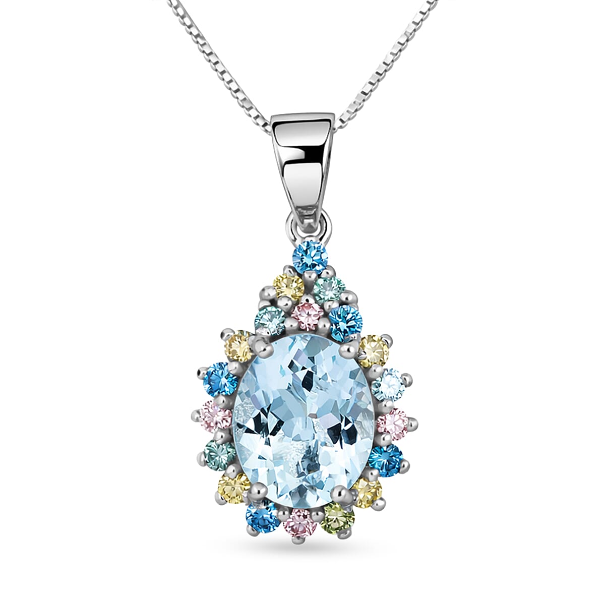 AAA Mangoro Aquamarine and Luxuriant Lab Grown Multi Diamond IR SI Pendant Necklace in Rhodium Over Sterling Silver 20 Inches