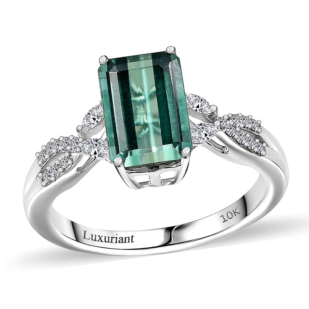 AAA Mint Tourmaline and Luxuriant Lab Grown Diamond E-F VS 2.65 ctw Ring in 10K White Gold (Size 8.5)