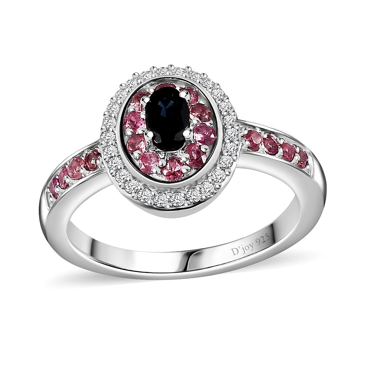AAA Monte Belo Indicolite and Multi Gemstone Double Halo Ring in Rhodium Over Sterling Silver (Size 6.0) 0.75 ctw