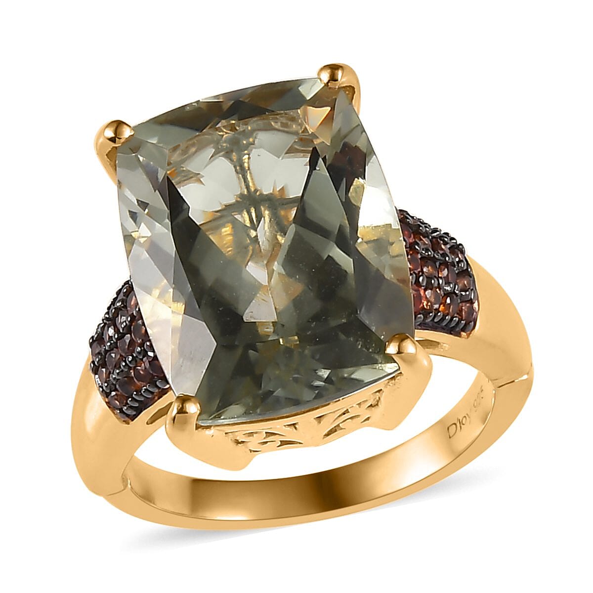 AAA Montezuma Prasiolite and Brown Zircon Ring in Vermeil Yellow Gold Over Sterling Silver 10.75 ctw (Delivery in 3-5 Business Days)