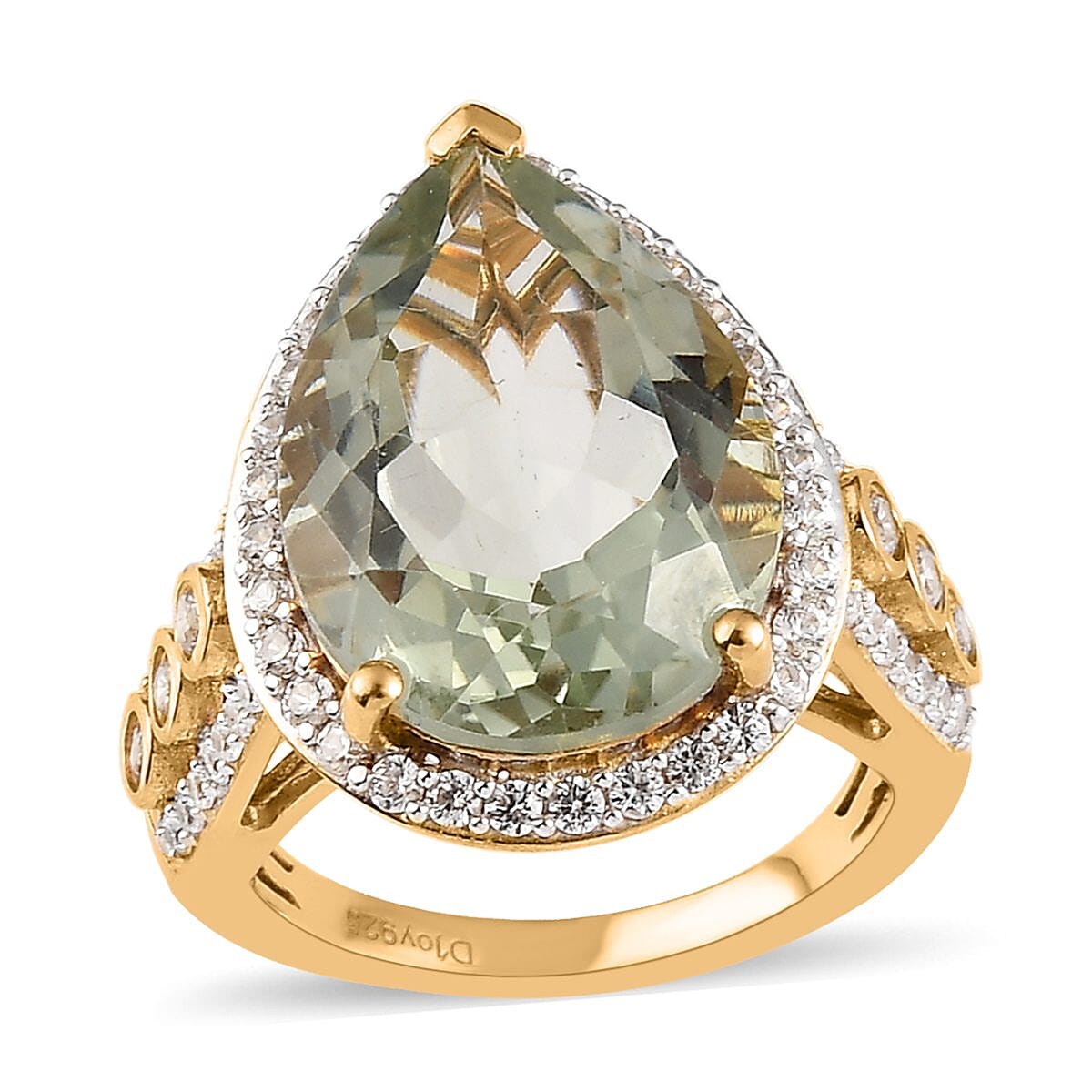 AAA Montezuma Prasiolite and White Zircon Ring in Vermeil Yellow Gold Over Sterling Silver (Size 8.0) 12.15 ctw