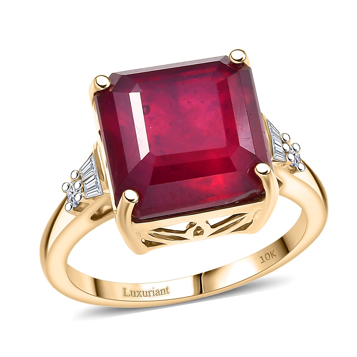 AAA Niassa Ruby (FF) and Luxuriant Lab Grown Diamond G-H SI 9.70 ctw Ring in 10K Yellow Gold (Size 10.0)