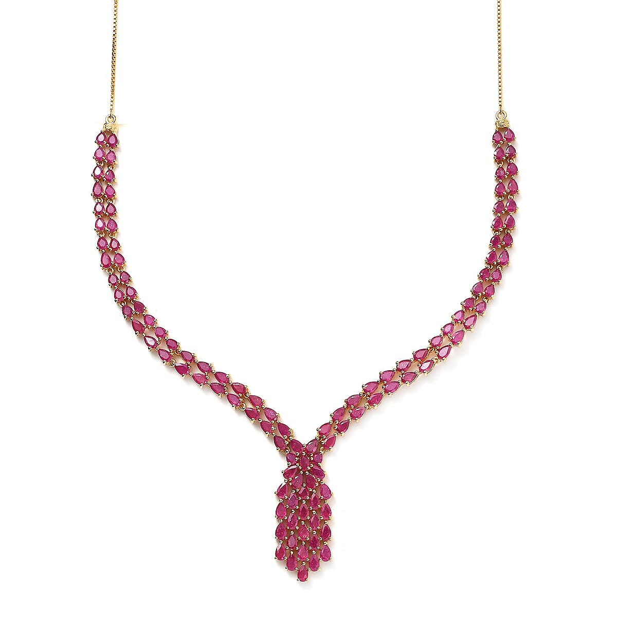 AAA Niassa Ruby (FF) V-shape Waterfall Necklace 18 Inches in Vermeil Yellow Gold Over Sterling Silver 20.90 ctw