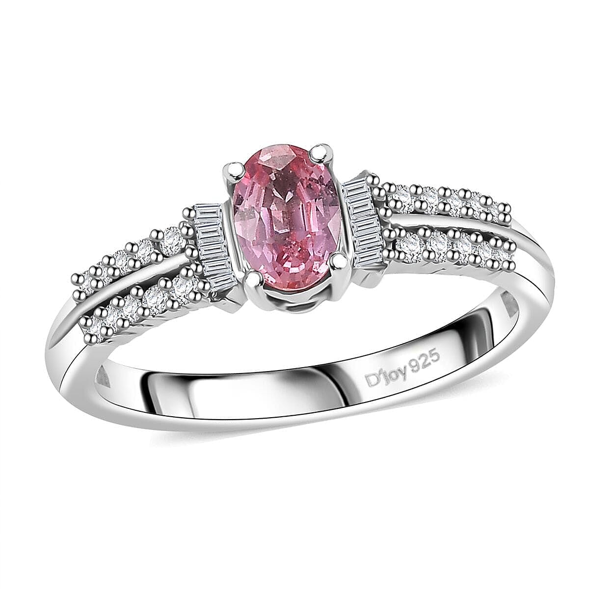 AAA Padparadscha Sapphire (BT), Diamond (0.15 cts) Ballerina Ring in Rhodium Over Sterling Silver (Size 7.0) 0.75 ctw