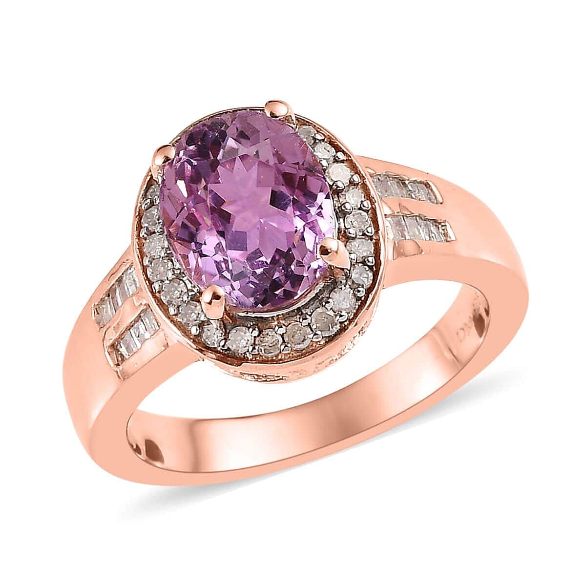 AAA Patroke Kunzite and Diamond Halo Ring in Vermeil Rose Gold Over Sterling Silver (Size 7.0) 2.85 ctw