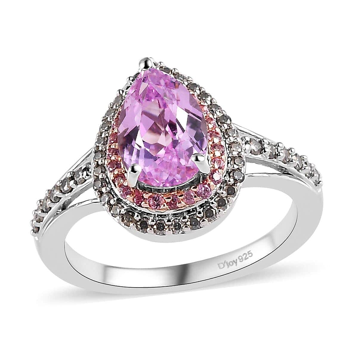 AAA Patroke Kunzite and Multi Gemstone Double Halo Ring in Vermeil RG and Platinum Over Sterling Silver (Size 8.0) 2.10 ctw