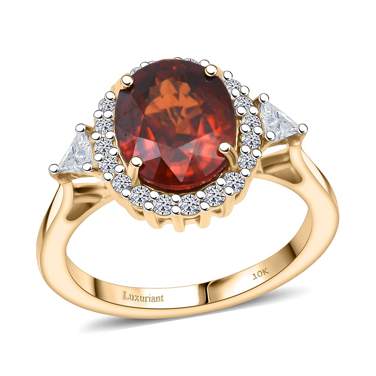 AAA Red Zircon and Luxuriant Lab Grown Diamond E-F VS 4.50 ctw Crownfire Ring in 10K Yellow Gold (Size 9.0)
