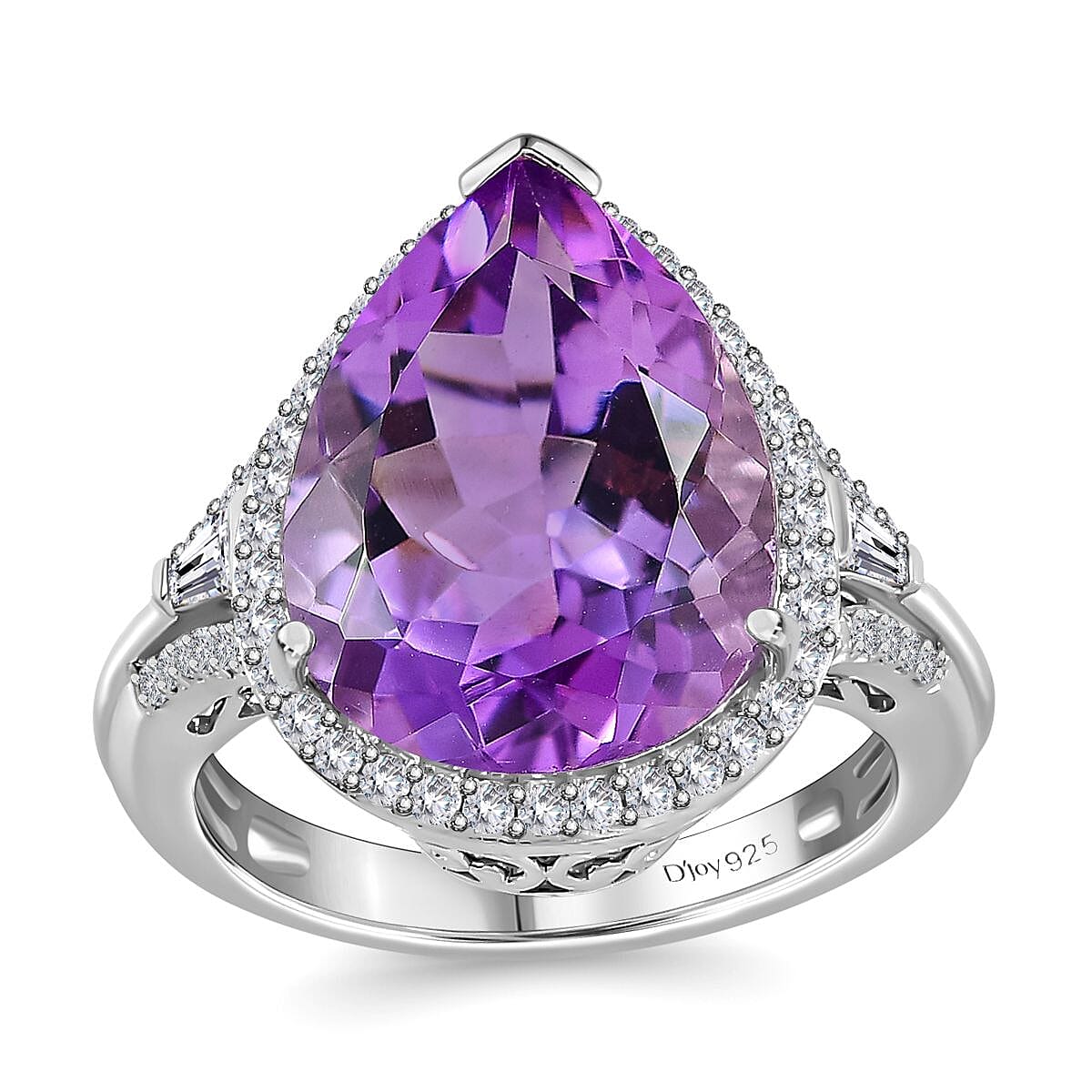 AAA Rose De France Amethyst and Moissanite Ring in Platinum Over Sterling Silver (Size 7.0) 8.50 ctw