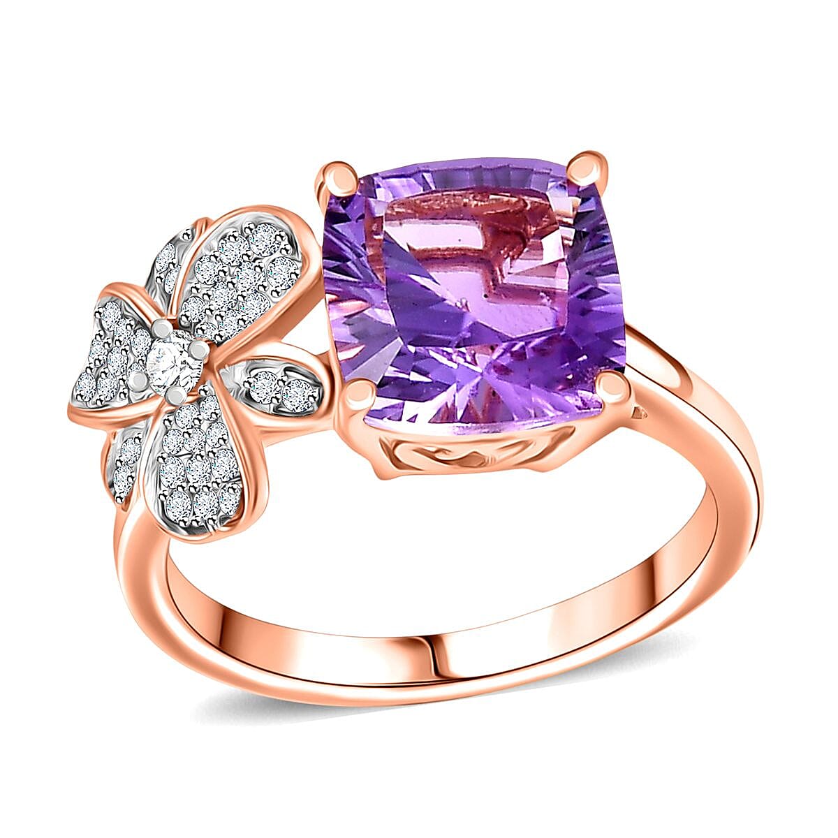 AAA Rose De France Amethyst and White Zircon 3.35 ctw Julia Flower Ring in 18K Vermeil Rose Gold Over Sterling Silver (Size 10.0)