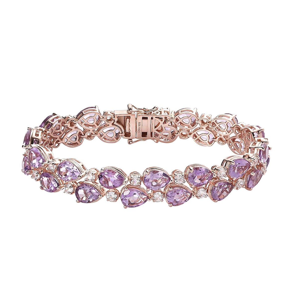 AAA Rose De France Amethyst and White Zircon Bracelet in Vermeil Rose Gold Over Sterling Silver (7.25 In) 33.75 ctw
