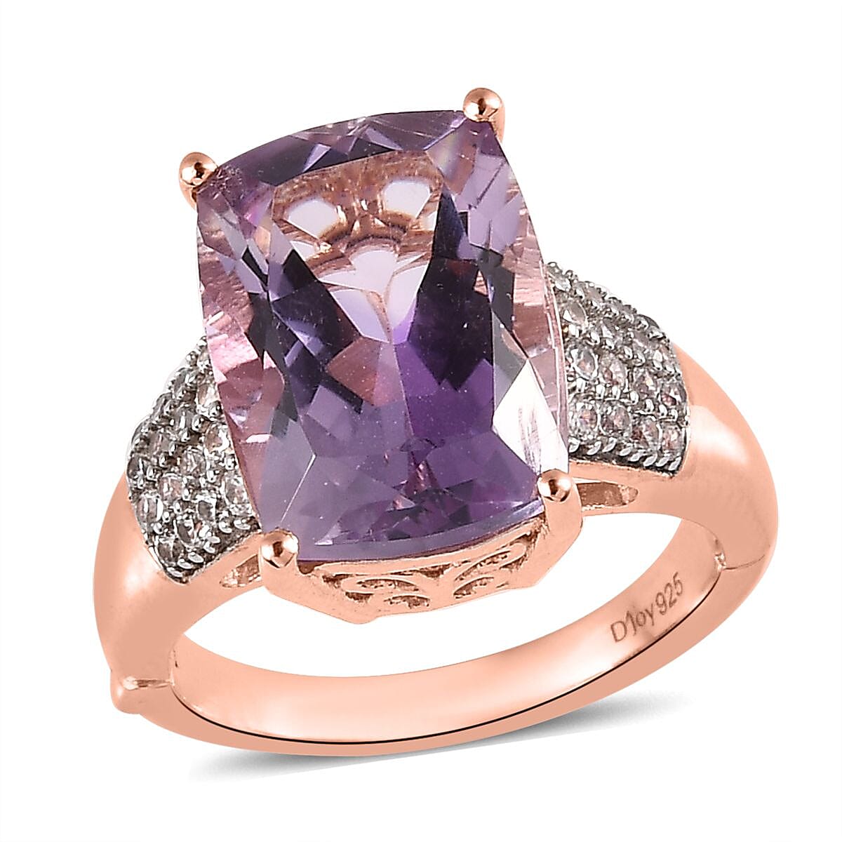AAA Rose De France Amethyst and White Zircon Ring in Vermeil Rose Gold Over Sterling Silver 7.15 ctw