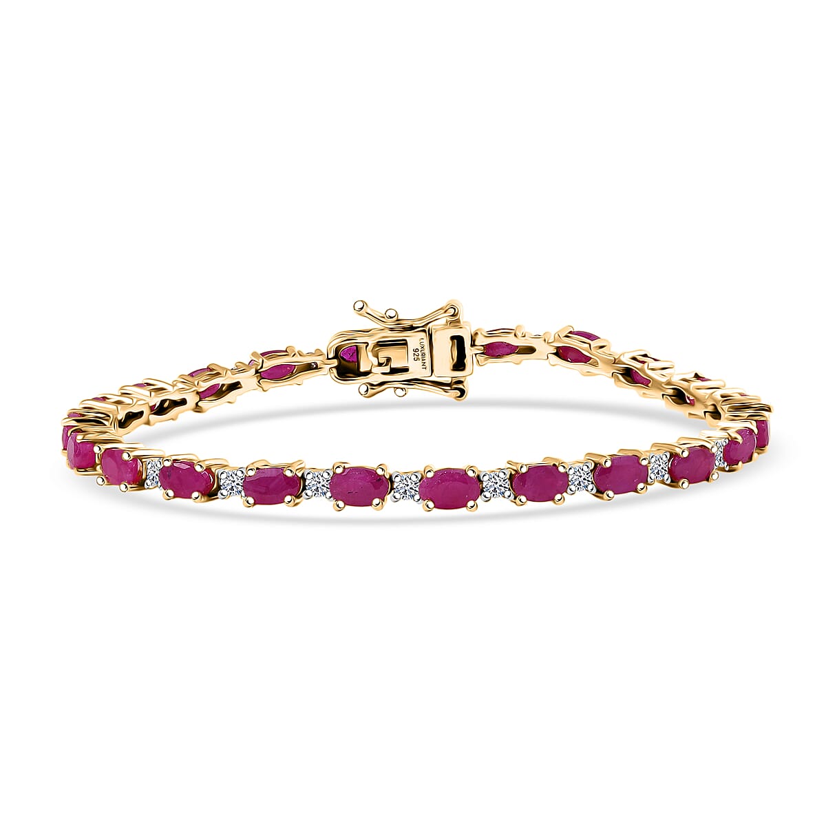 AAA Royal Ruby and Luxuriant Lab Grown Diamond 8.60 ctw Bracelet in 18K Vermeil Yellow Gold Over Sterling Silver (6.50 In)