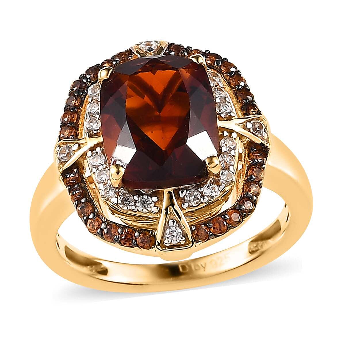 AAA Santa Ana Madeira Citrine, White and Coffee Zircon Double Halo Ring in Vermeil Yellow Gold Over Sterling Silver (Size 7.0) 3.75 ctw