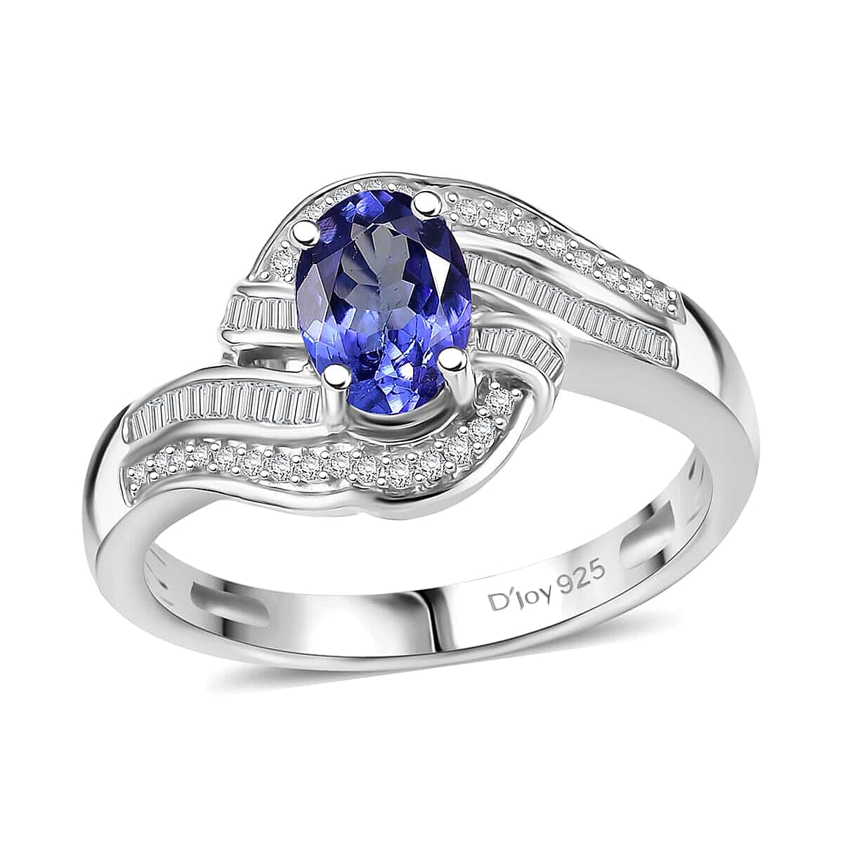 AAA Tanzanite and Diamond 1.15 ctw Ring in Rhodium Over Sterling Silver (Size 6.0)