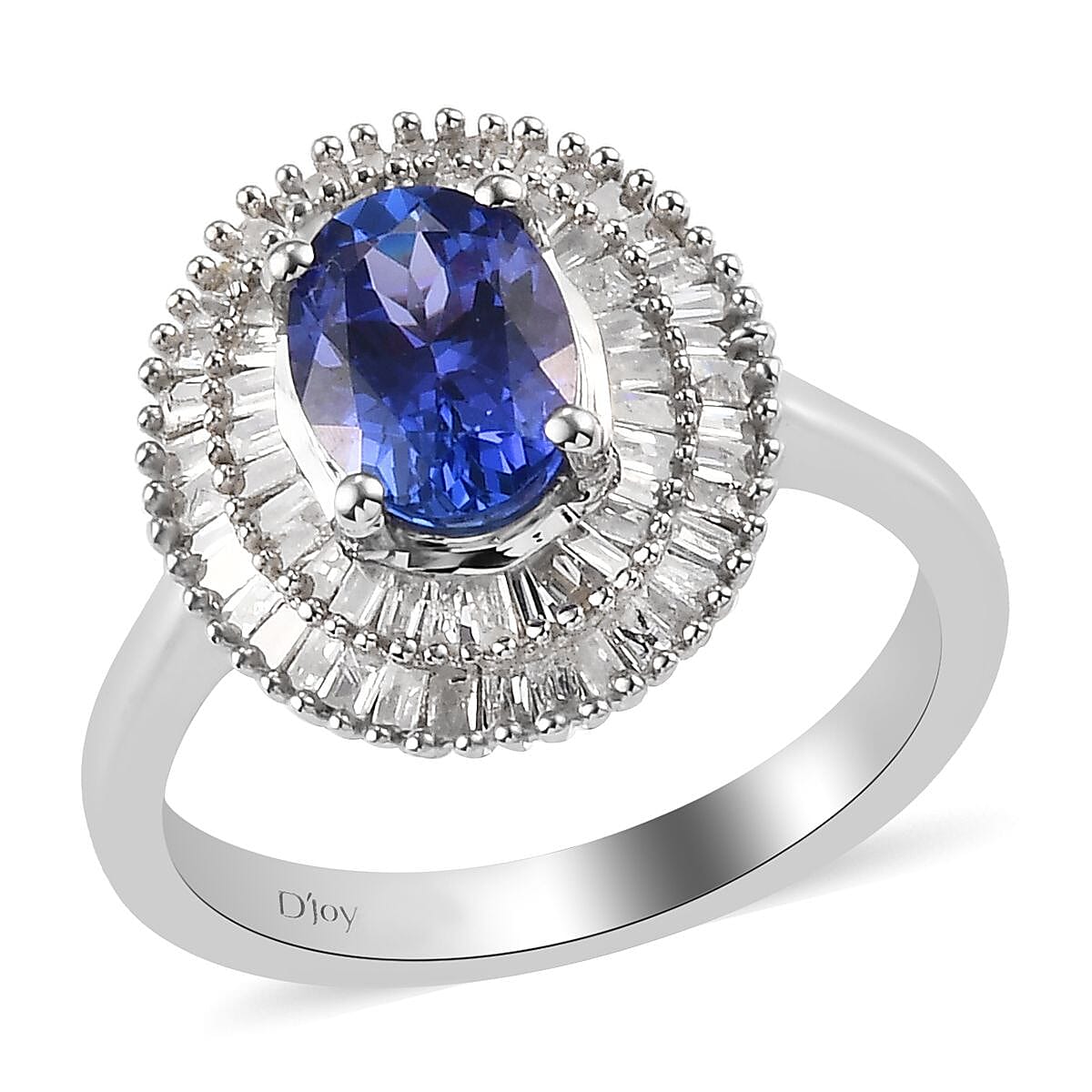 AAA Tanzanite and Diamond Double Halo Ring in Platinum Over Sterling Silver, Oval Engagement Ring (Size 10.0) 1.65 ctw