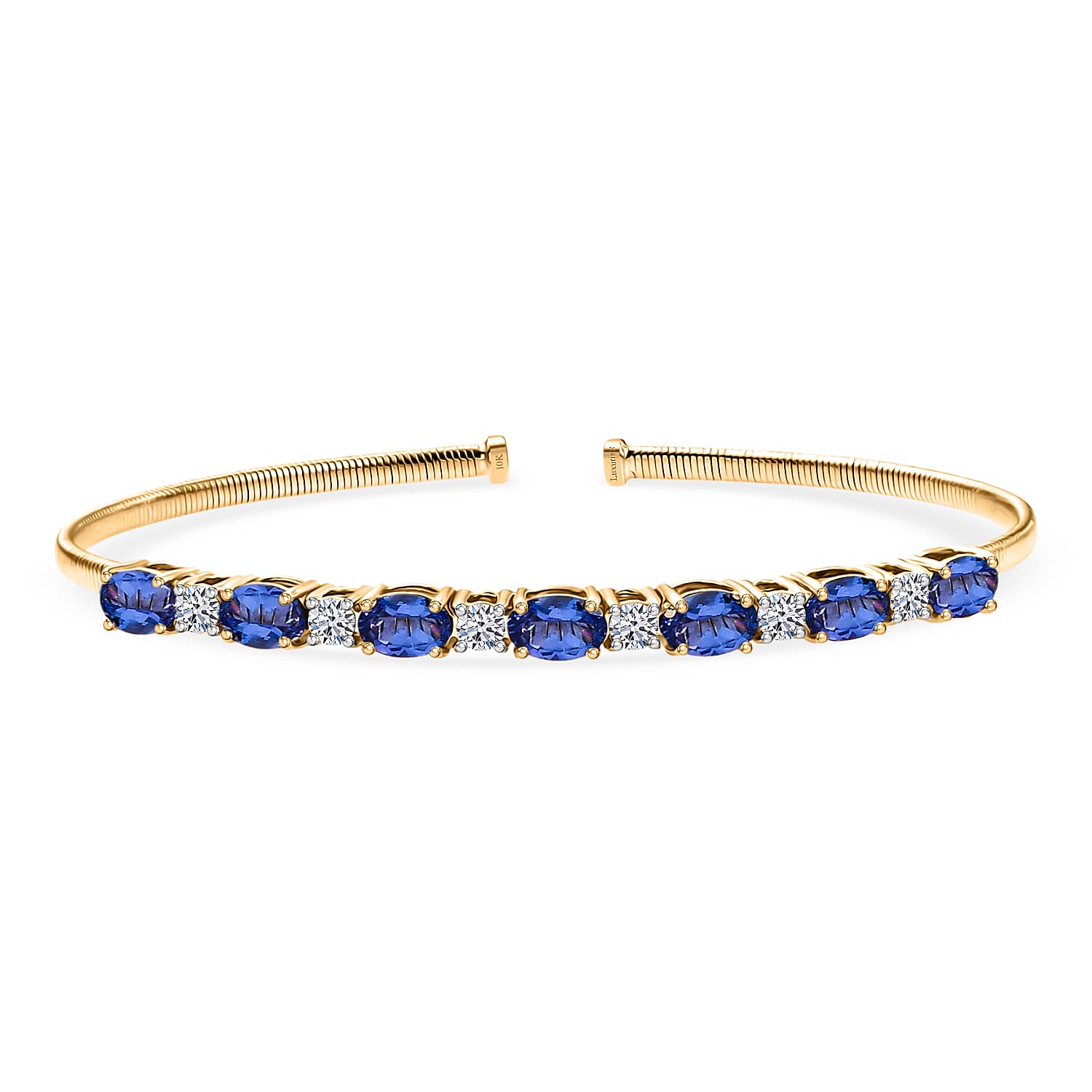 AAA Tanzanite and Luxuriant Lab Grown Diamond E-F VS 4.00 ctw Cuff Bracelet in 10K Yellow Gold (7.25 In)