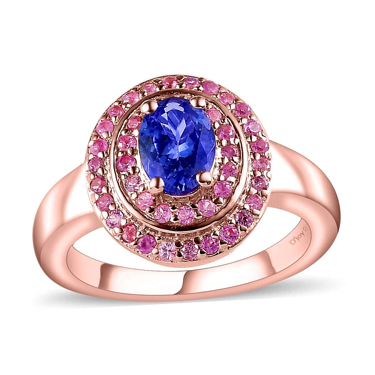 AAA Tanzanite and Madagascar Pink Sapphire Double Halo Ring in Vermeil Rose Gold Over Sterling Silver (Size 9.0) 1.30 ctw
