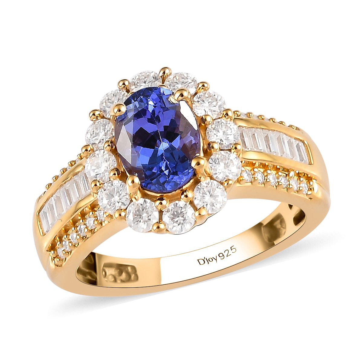 AAA Tanzanite and Moissanite Halo Ring in Vermeil Yellow Gold Over Sterling Silver (Size 9.0) 2.25 ctw