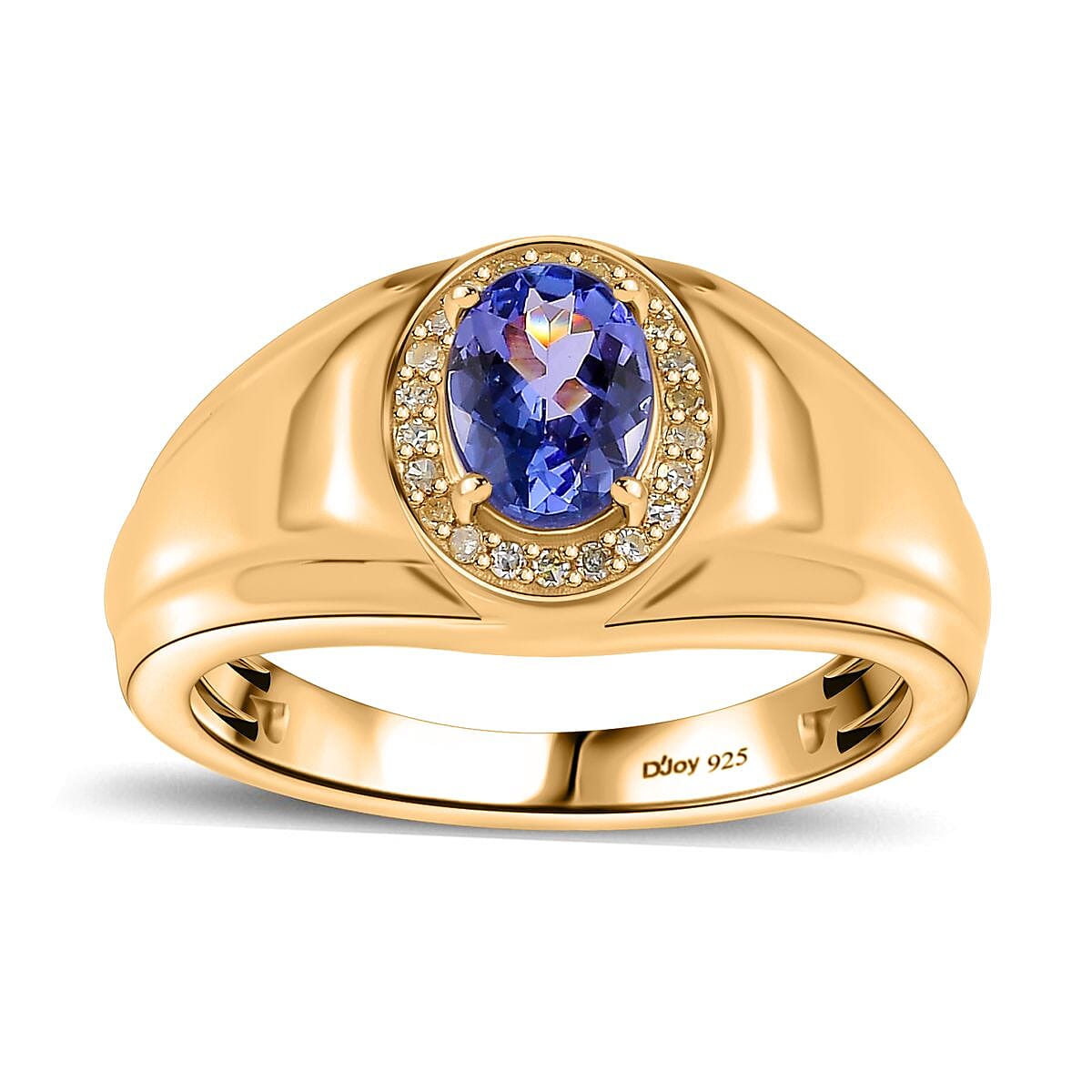 AAA Tanzanite and Natural Yellow Diamond Men's Ring in Vermeil Yellow Gold Over Sterling Silver (Size 10.0) 1.10 ctw