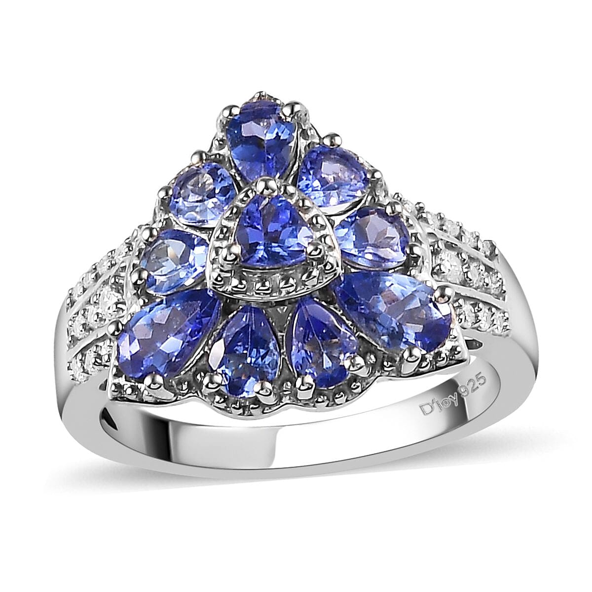 AAA Tanzanite and White Zircon Floral Ring in Platinum Over Sterling Silver (Size 6.0) 1.85 ctw