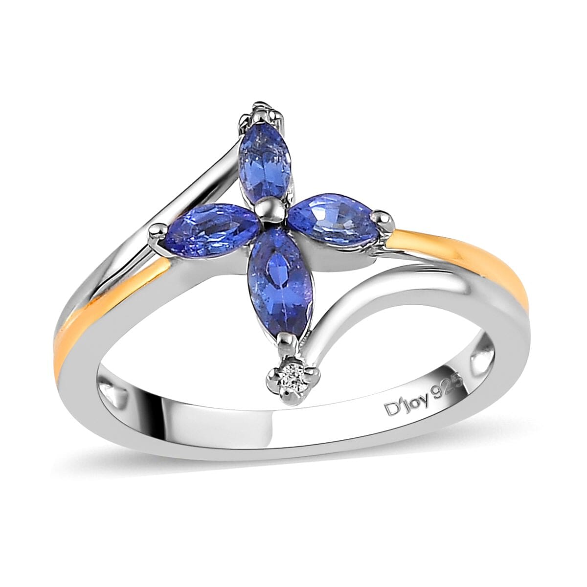 AAA Tanzanite and White Zircon Floral Ring in Vermeil Yellow Gold and Platinum Over Sterling Silver (Size 7.0) 0.40 ctw