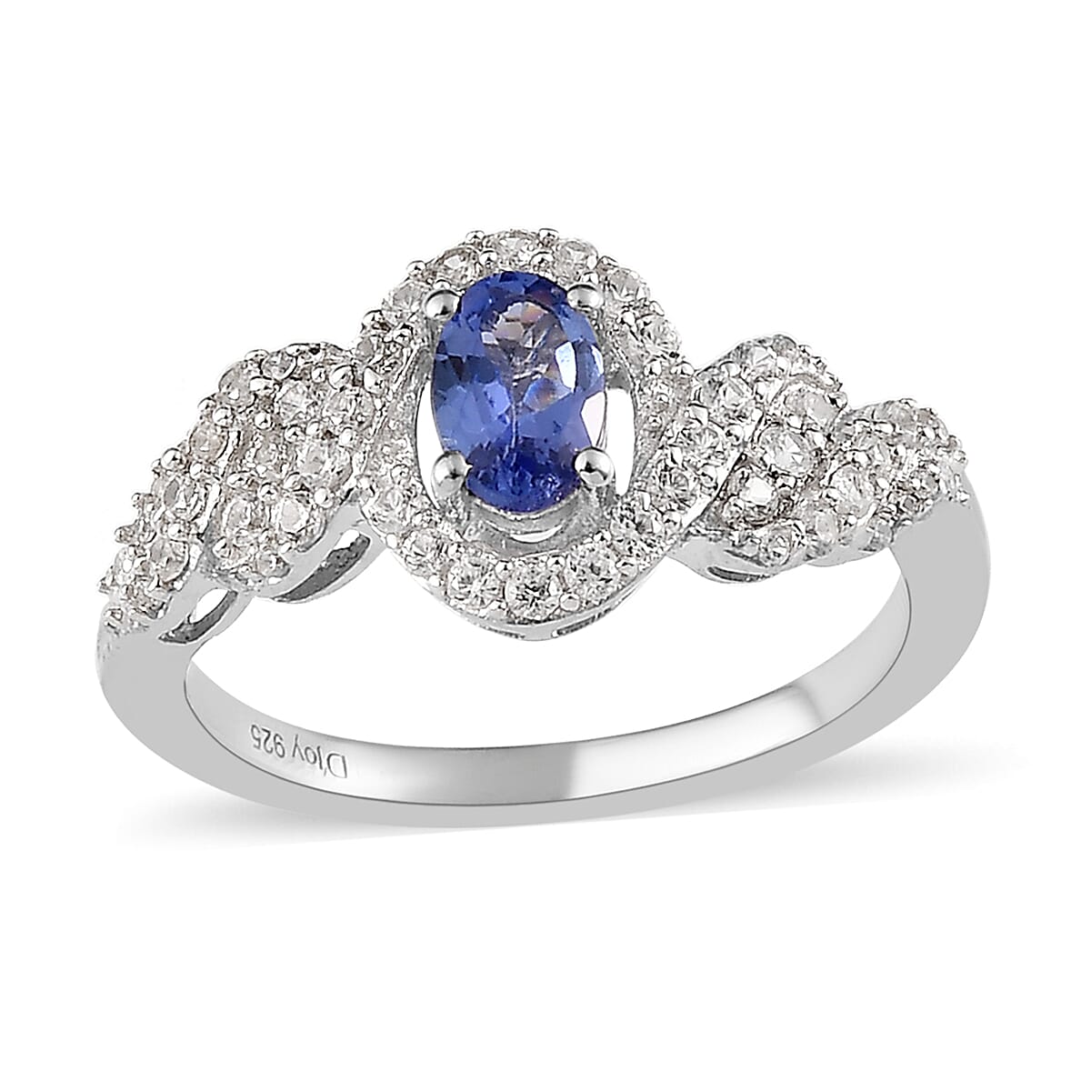 AAA Tanzanite and White Zircon Ring in Platinum Over Sterling Silver (Size 8.0) 1.10 ctw
