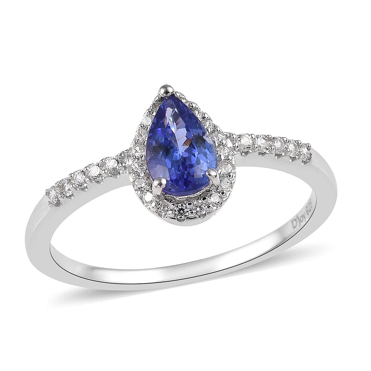 AAA Tanzanite, Natural White Zircon Ring in Platinum Over Sterling Silver (Size 8.0) 1.25 ctw