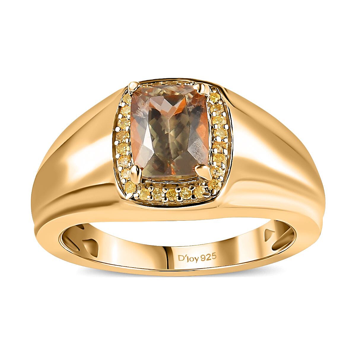 AAA Turkizite and Natural Yellow Diamond Men's Ring in Vermeil Yellow Gold Over Sterling Silver (Size 10.0) 2.00 ctw