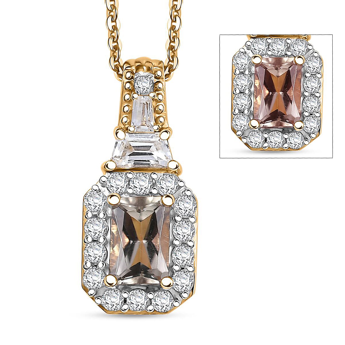 AAA Turkizite and White Zircon 1.30 ctw Vintage Halo Pendant Necklace in 18K Vermeil Yellow Gold Over Sterling Silver 20 Inches