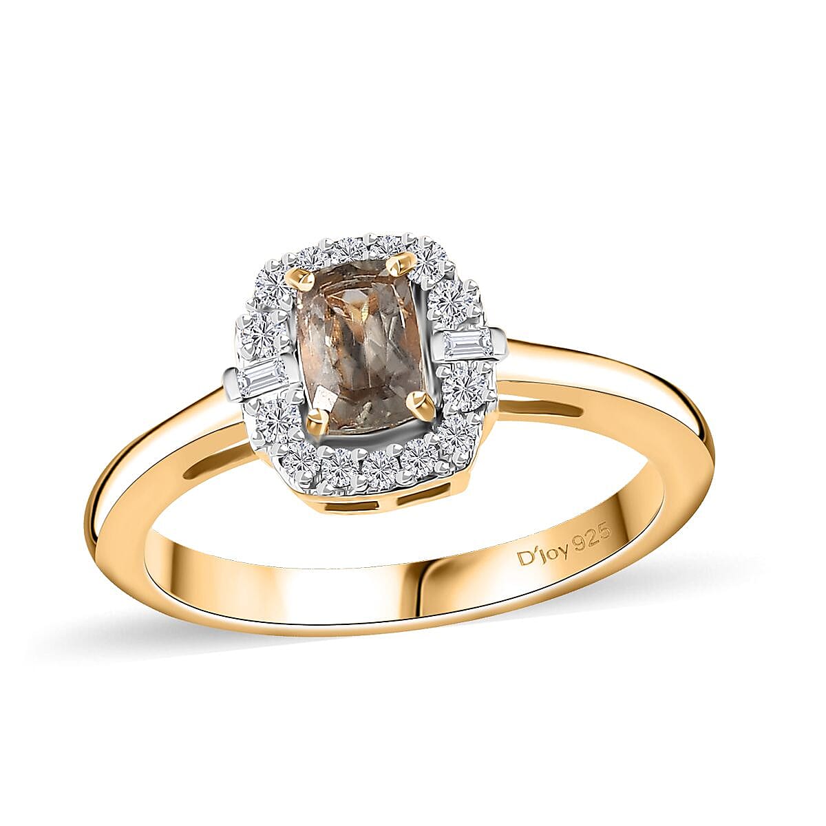 AAA Turkizite and White Zircon Halo Ring in 18K Vermeil Yellow Gold Over Sterling Silver (Size 7.0) 0.90 ctw