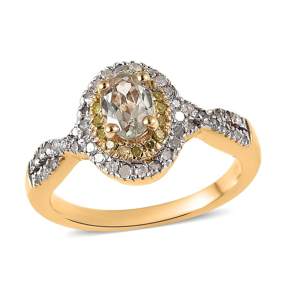 AAA Turkizite, Yellow and White Diamond Double Halo Ring in Vermeil Yellow Gold Over Sterling Silver (Size 5.0) 0.75 ctw