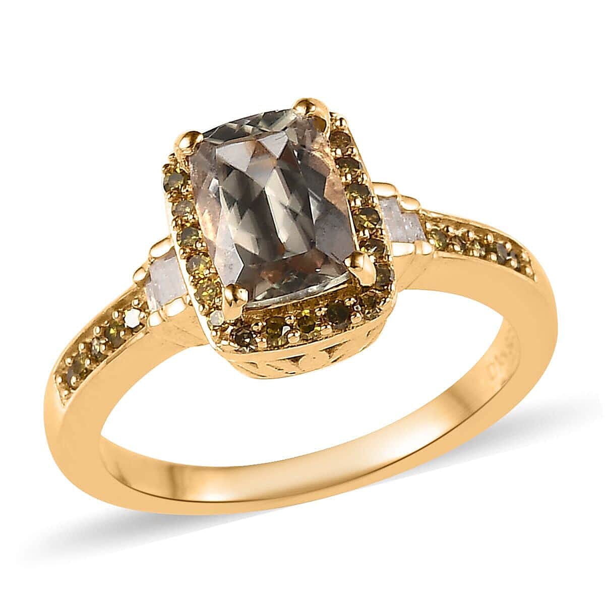 AAA Turkizite, Yellow and White Diamond Halo Ring in Vermeil Yellow Gold Over Sterling Silver (Size 6.0) 1.40 ctw