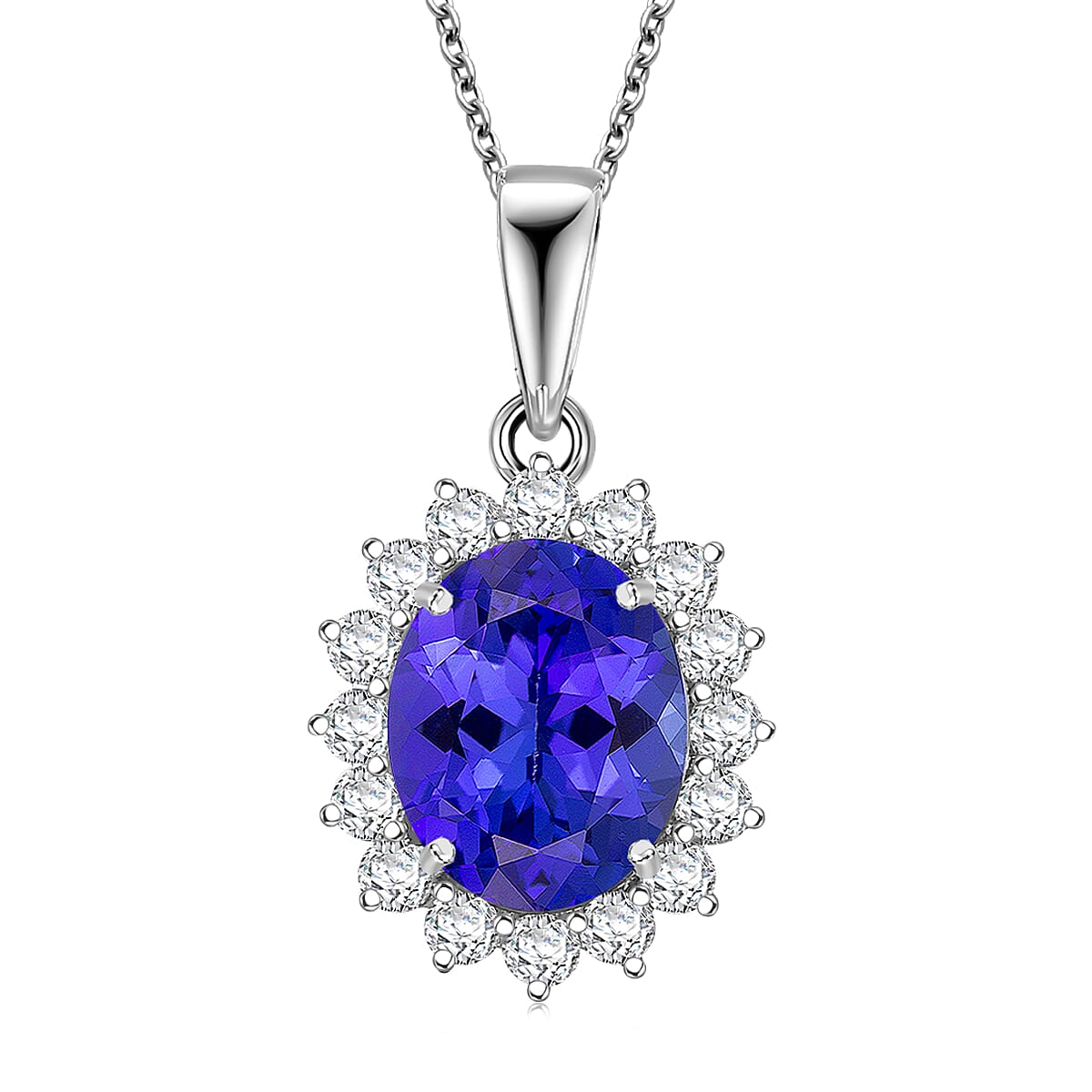 Enhance your style with this tanzanite and diamond floral pendant in 950 palladium with 10K white gold necklace. This luxury gemstone pendant necklace features AAAA tanzanite and E–F VS diamonds in an elegant floral design. Perfect for adding vibrant color and refined sparkle to both everyday looks and special occasions.