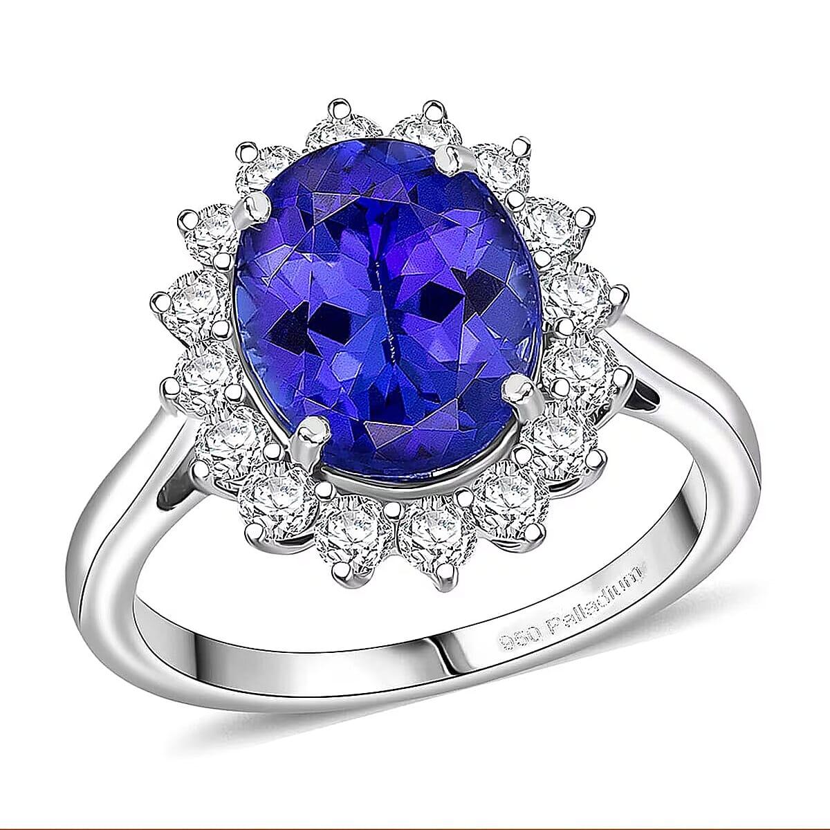 AAAA Tanzanite, Diamond Floral Ring in 950 Palladium 4.50 ctw (Size 9.5)