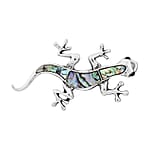 Abalone Shell and Black Austrian Crystal Lizard Brooch in Silvertone