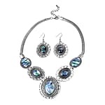 Abalone Shell Dangle Earrings Necklace in Silvertone Stainless Steel, Abalone Shell Jewelry Set, Beach Fashion Jewelry For Women