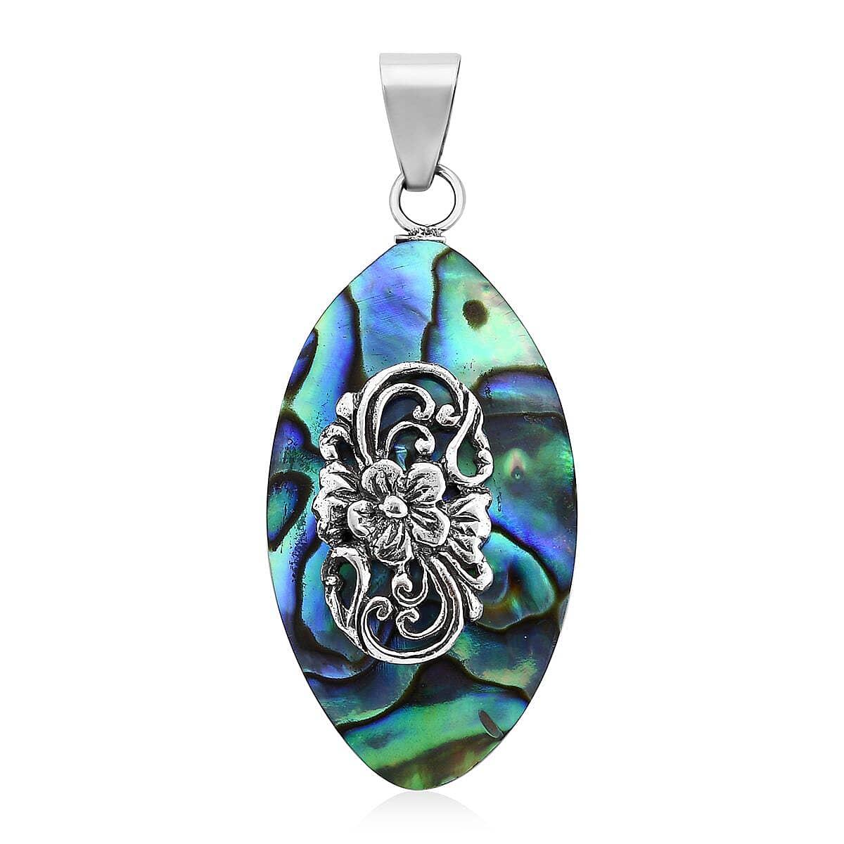 Dive into a world of captivating beauty with this abalone shell pendant. This exquisite piece captures the essence of the ocean, showcasing a shimmering abalone shell set in a lustrous metal frame. The iridescent hues of the shell, ranging from deep blues and greens to pearly whites, evoke the ever-changing colors of the sea. This pendant is more than just jewelry; it's a wearable piece of art that transports you to the ocean’s depths with every glance.