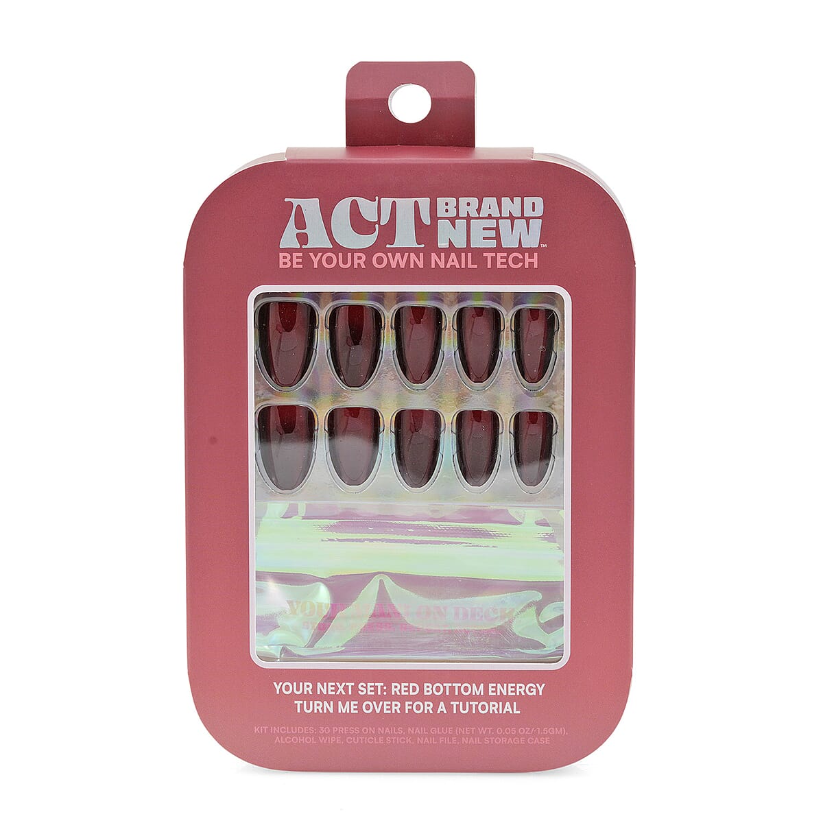 Act Brand New Press On Nail Kit- Red Bottom Energy (Deep Red Cat-Eye)