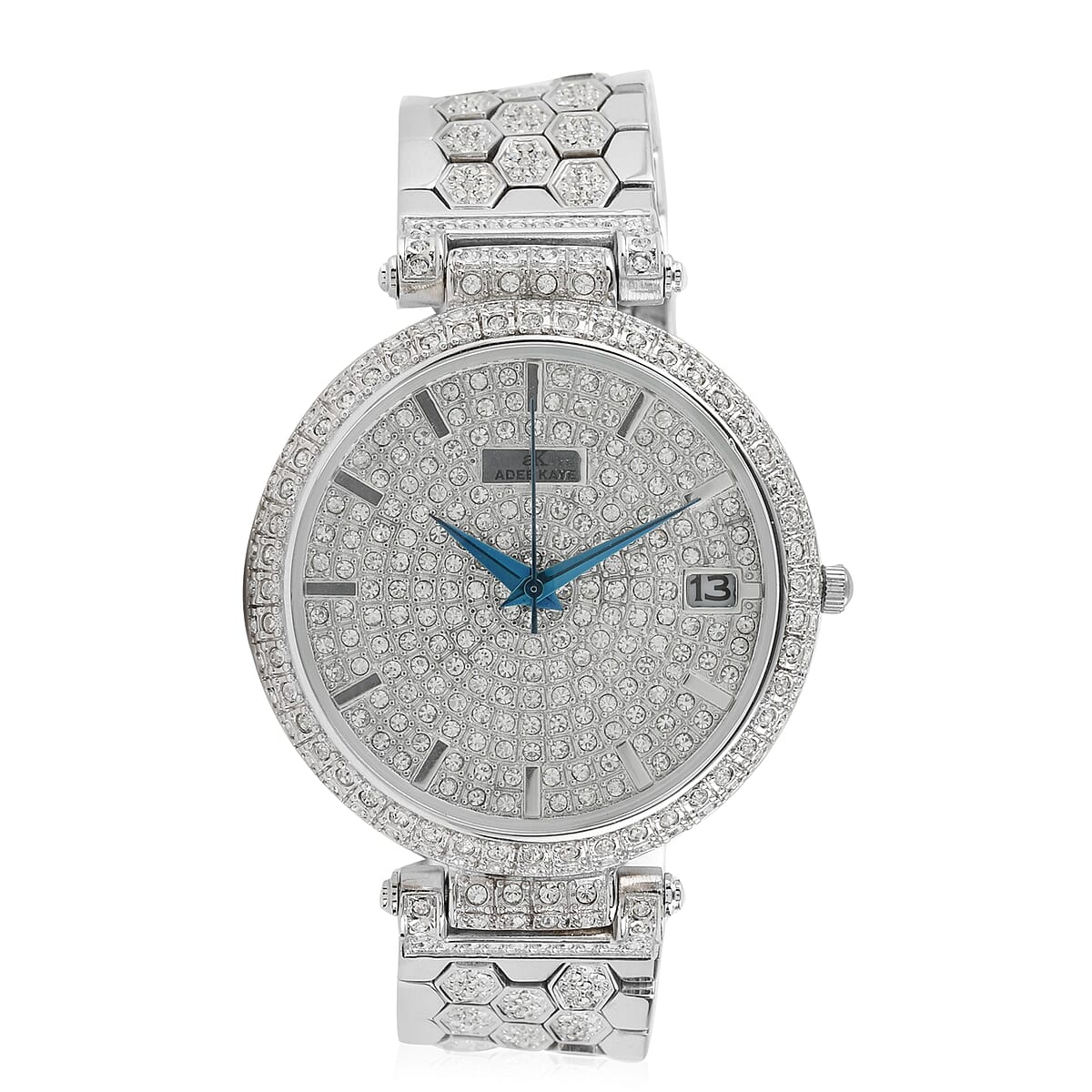 ADEE KAYE Finess Austrian Crystal Japanese Movement Watch in Silvertone (40mm)