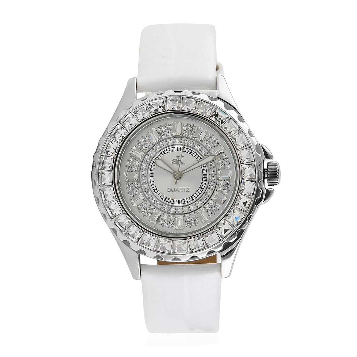 ADEE KAYE Royalty Austrian Crystal Japanese Movement Watch with Genuine Leather Strap in White (38mm)