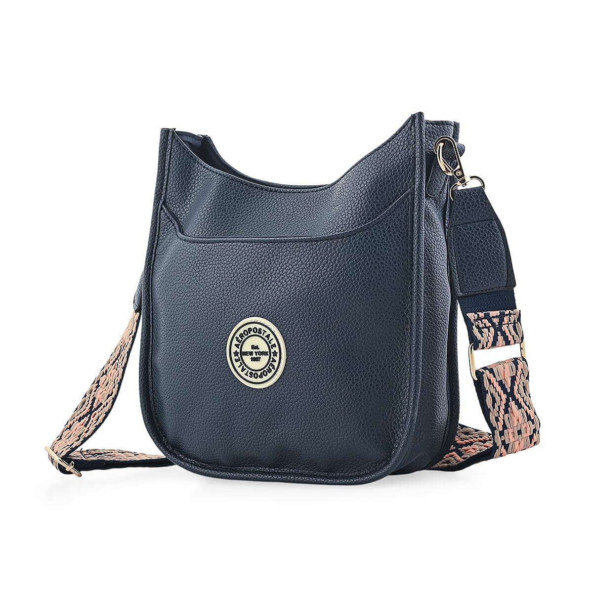 Aeropostale Navy Faux Leather Crossbody Bag with Beige Adjustable Shoulder Strap