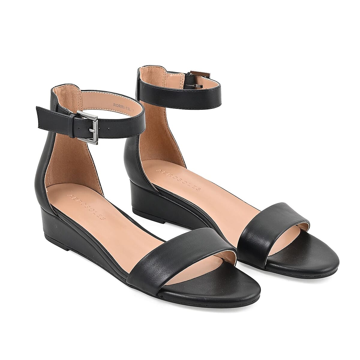 Aerosoles Black Faux Leather Ankle Strap Sandal - 7