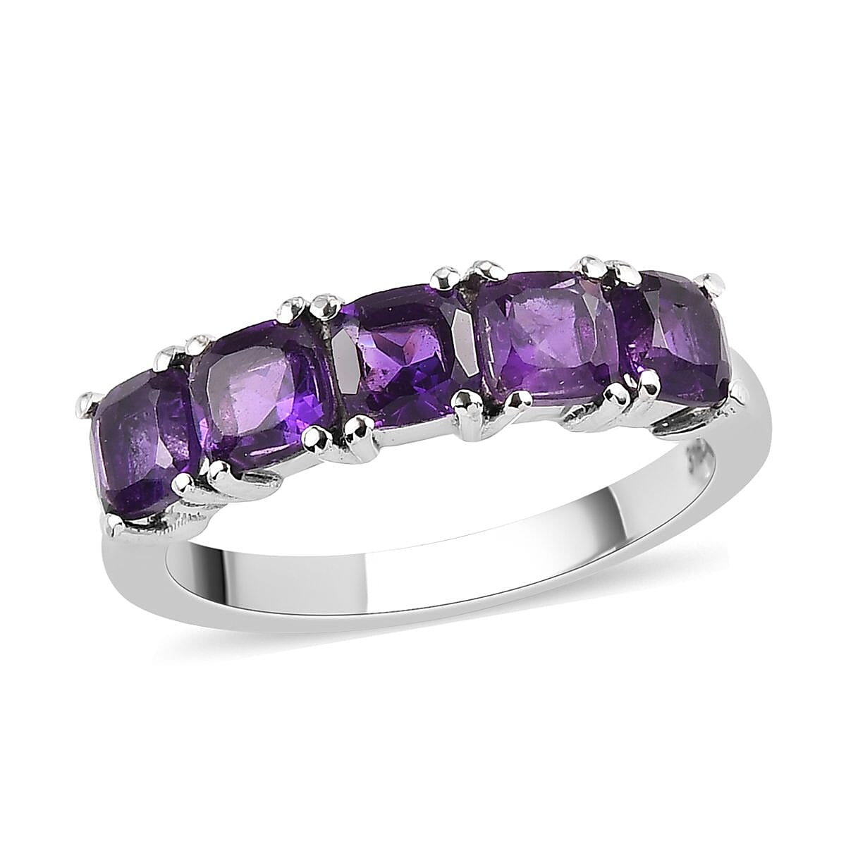 African Amethyst 5 Stone Ring in Stainless Steel 1.40 ctw