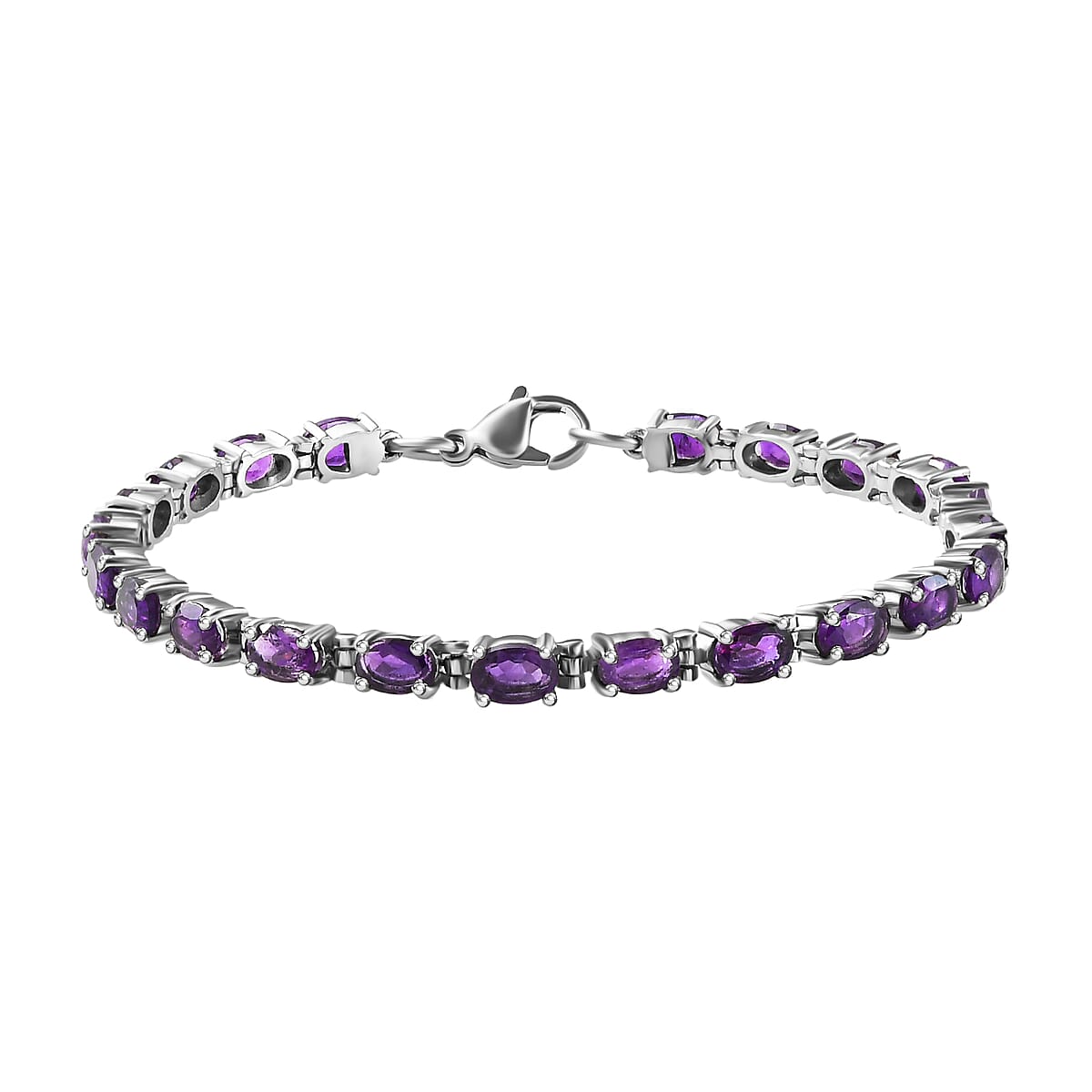 African Amethyst 9.30 ctw Bracelet in Stainless Steel (7.50 In)