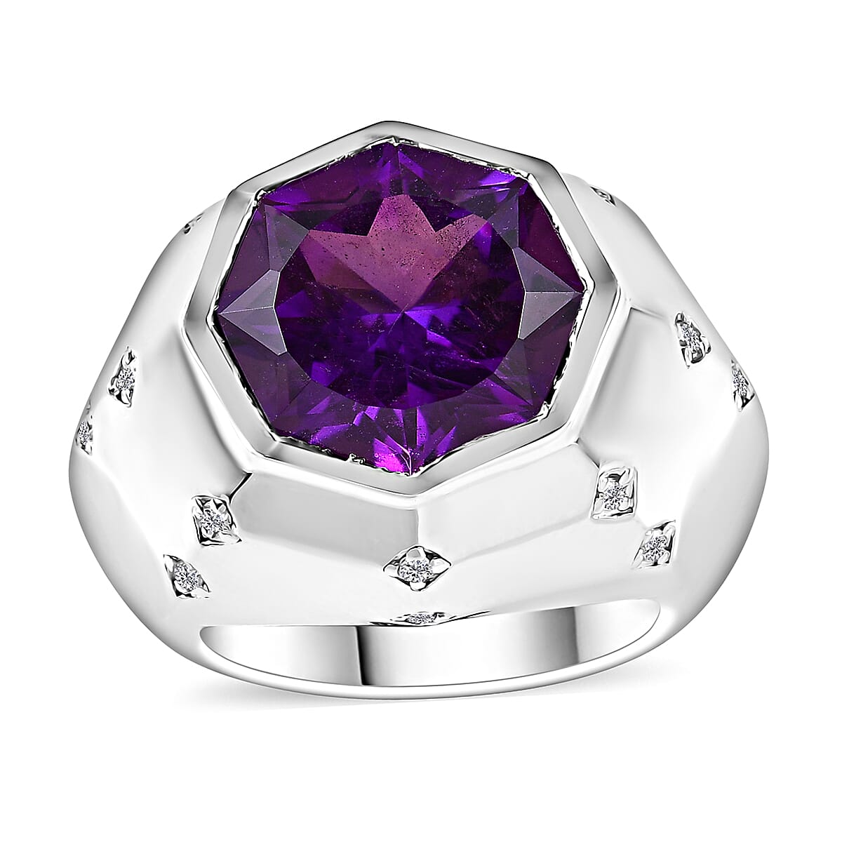 African Amethyst and Moissanite 12.55 ctw Men's Ring in Rhodium Over Sterling Silver (Size 12.0)