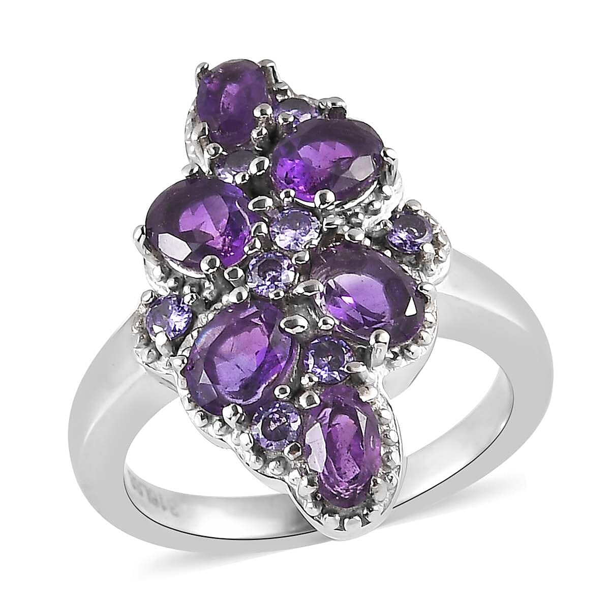 African Amethyst and Simulated Purple Diamond 2.35 ctw Ring in Stainless Steel (Size 9.0)
