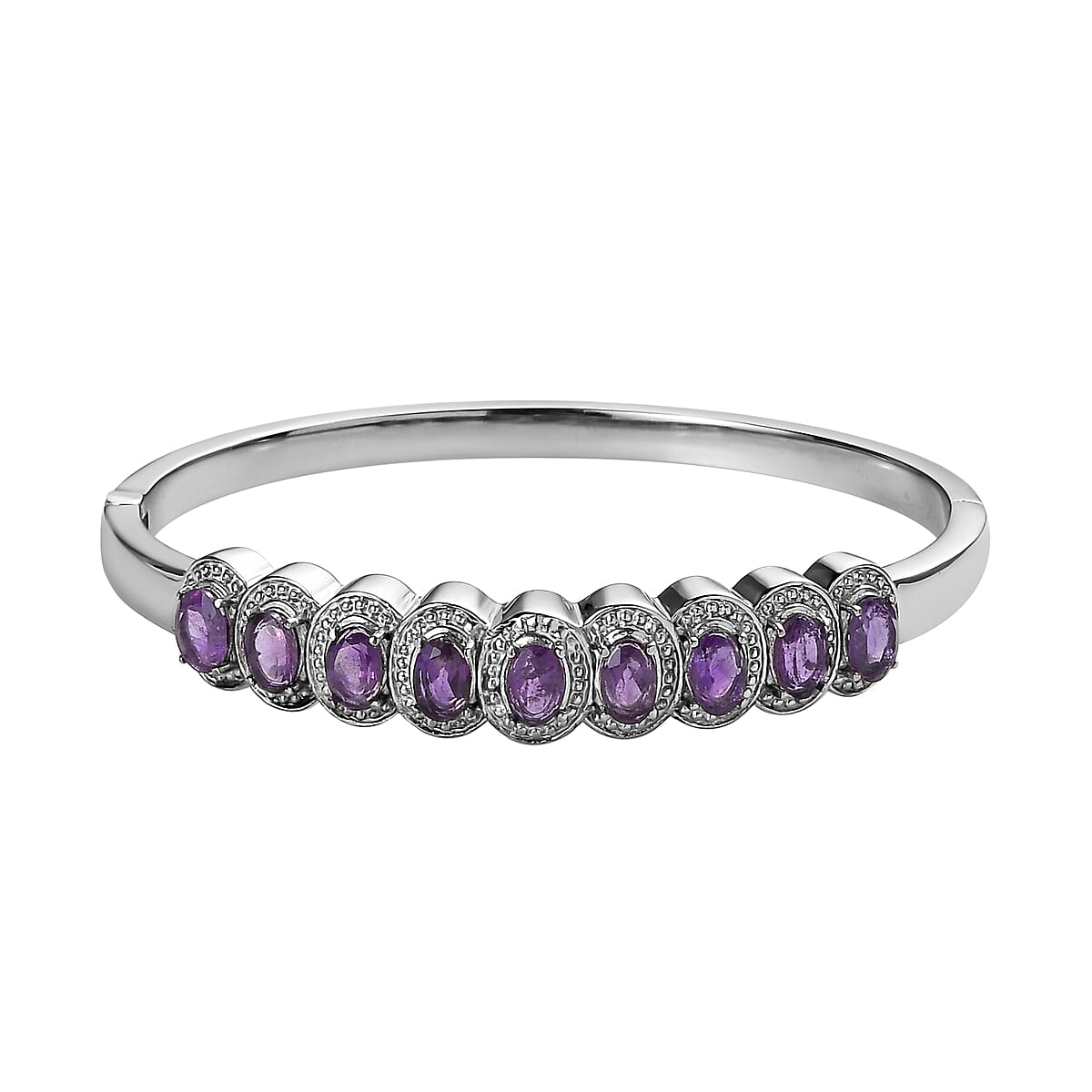 African Amethyst Bangle Bracelet in Stainless Steel (6.50 In) 3.75 ctw